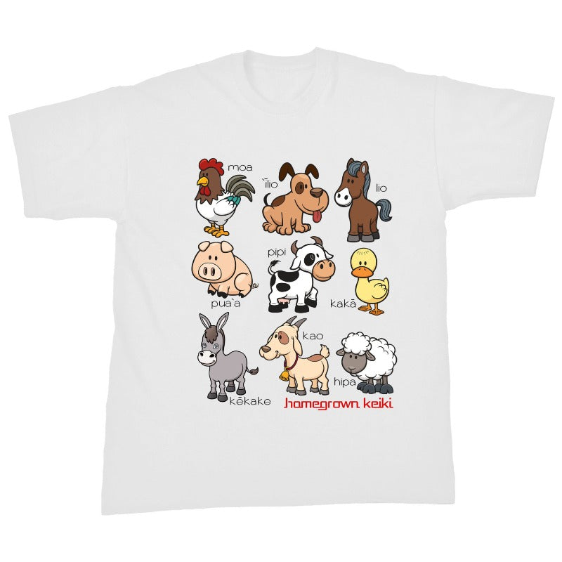 Colors keiki (children's) tee identifies the colors as taught in the Hawaiian color song: